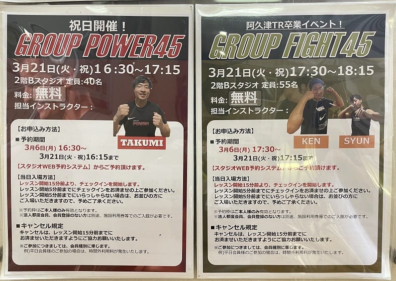 45分クラスは2曲追加されるので心地よい疲労感と充実感が味わえます!