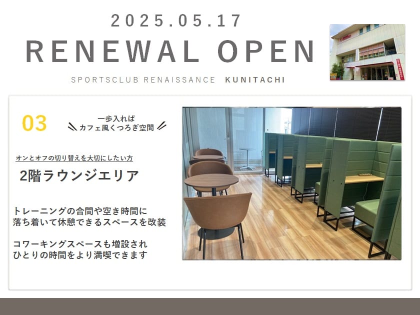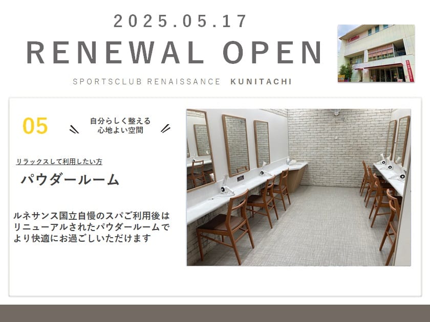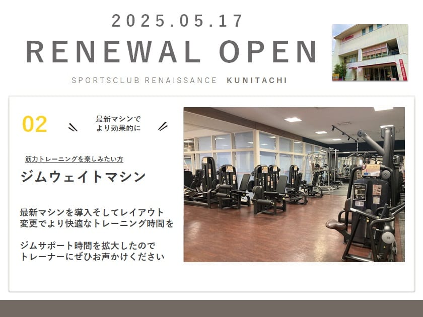 【リニューアル情報】ルネサンス国立が新しく「進化」。