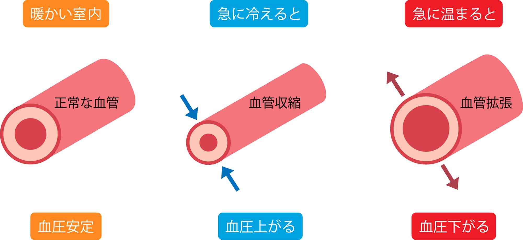 暖かい場所から寒い場所へ、またはその逆への移動により血管が急激に収縮、拡張し、身体がその変化に対応しきれないと、めまいや立ちくらみといった症状が現れることがあります。