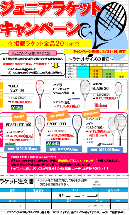 みなさまも新年、新年度新たな気持ちでラケット新しくしてみませんか?