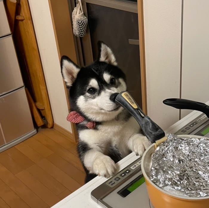 犬種はシベリアンハスキーです。(よく黒柴と間違えられますが、ハスキーなんです)