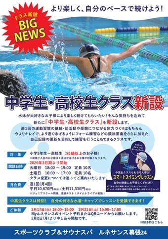 【スイミング】BIG NEWS!!新クラス開設のお知らせ!!!