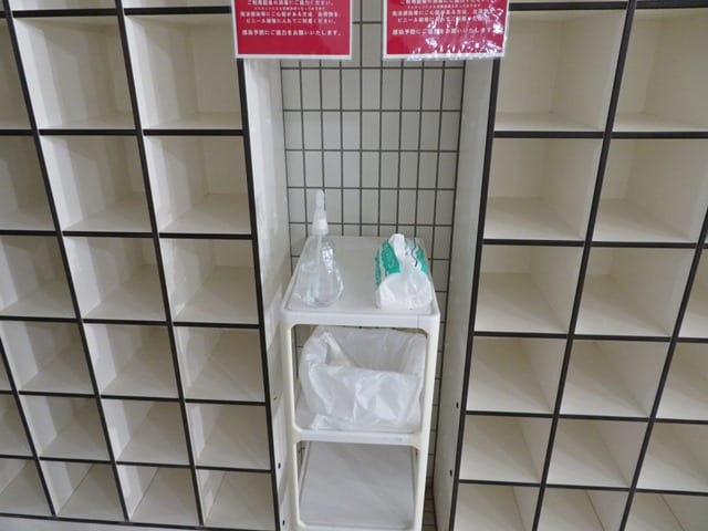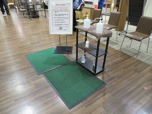 館内の各所に消毒液の設置をしております!