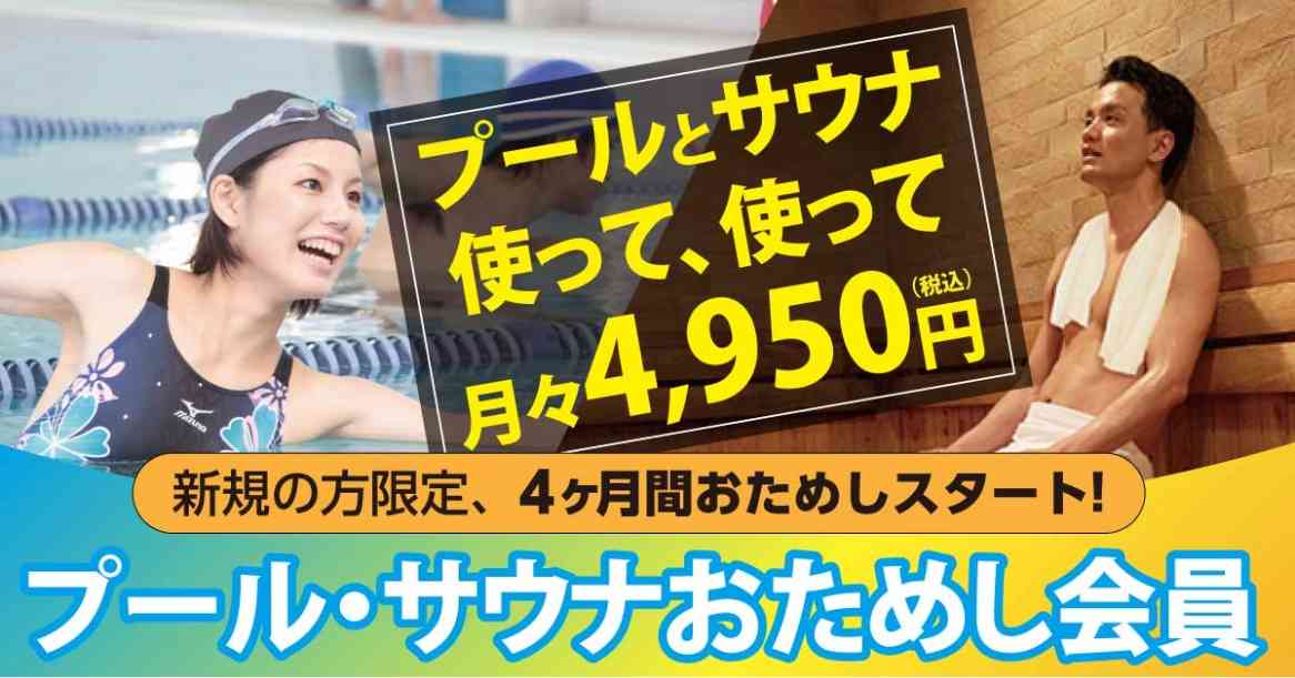 【新規限定】4ヶ月間・月額4,950円(税込)「プール・サウナおためし会員」募集中