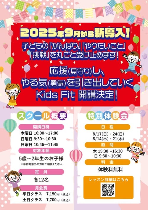 新しいジュニアスクール「Kids Fit」がはじまるよ☆彡