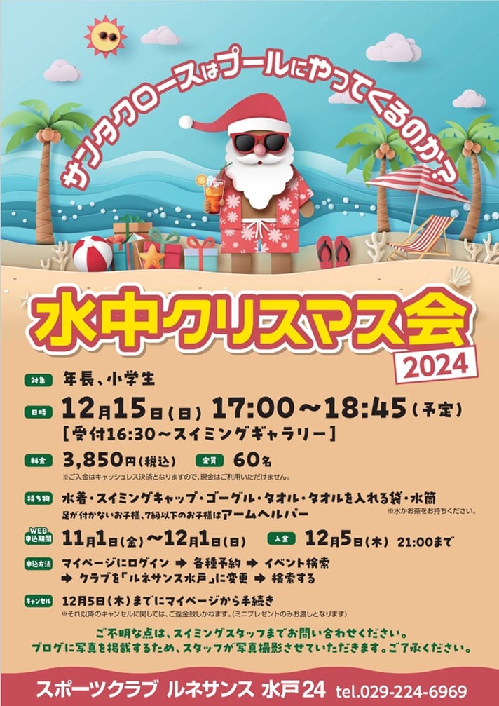 そんなスタッフとプールで遊べるクリスマス会の申し込みがスタートしています!