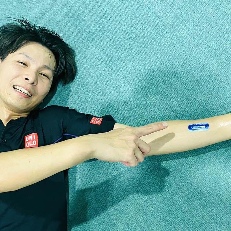 ↑このステッカーを貼って運動すると発汗量を調べることが出来る優れもの!