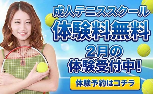 【成人テニススクール】2月の体験予約はこちら!冷暖房完備!お風呂やサウナもります!こんなテニススクールはルネサンスだけ!
