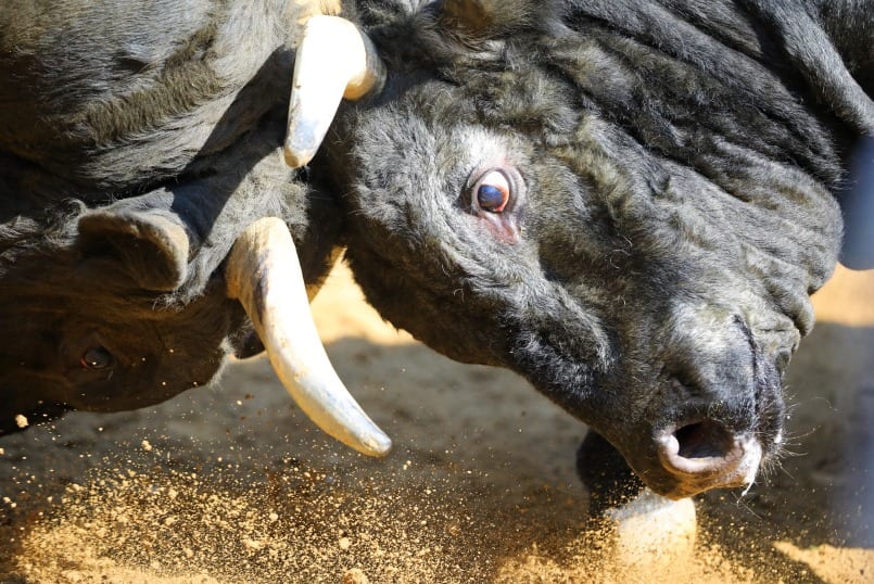 それでも約1トンの牛たちが角を突く姿は迫力がありますよ。