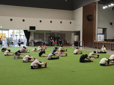 準備体操の様子ですが、みんな身体が柔らかくてビックリしたので、思わずパシャリ。。