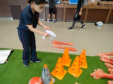 コロナ感染予防対策の為、使用する器具、保護者席の消毒、休憩後の子ども達の手指消毒を徹底して行いました。