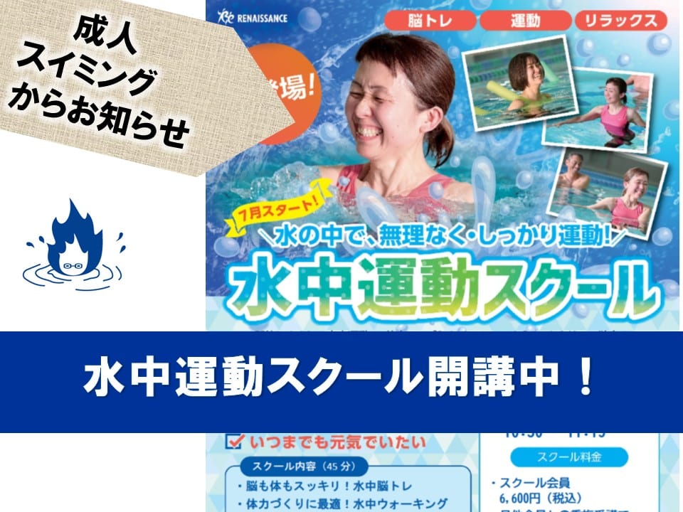 水中運動スクール開講中!水曜クラスも開設!成人スイミングより こんにちは! いつもスポーツクラブ&サウナスパ ルネサンス名古屋小幡のブログをご愛読いただきありがとうございま・・・・