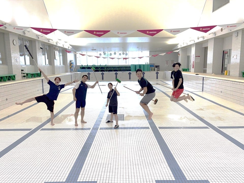 また、プールの水の入替えと床面ブラシ掛けを行いました