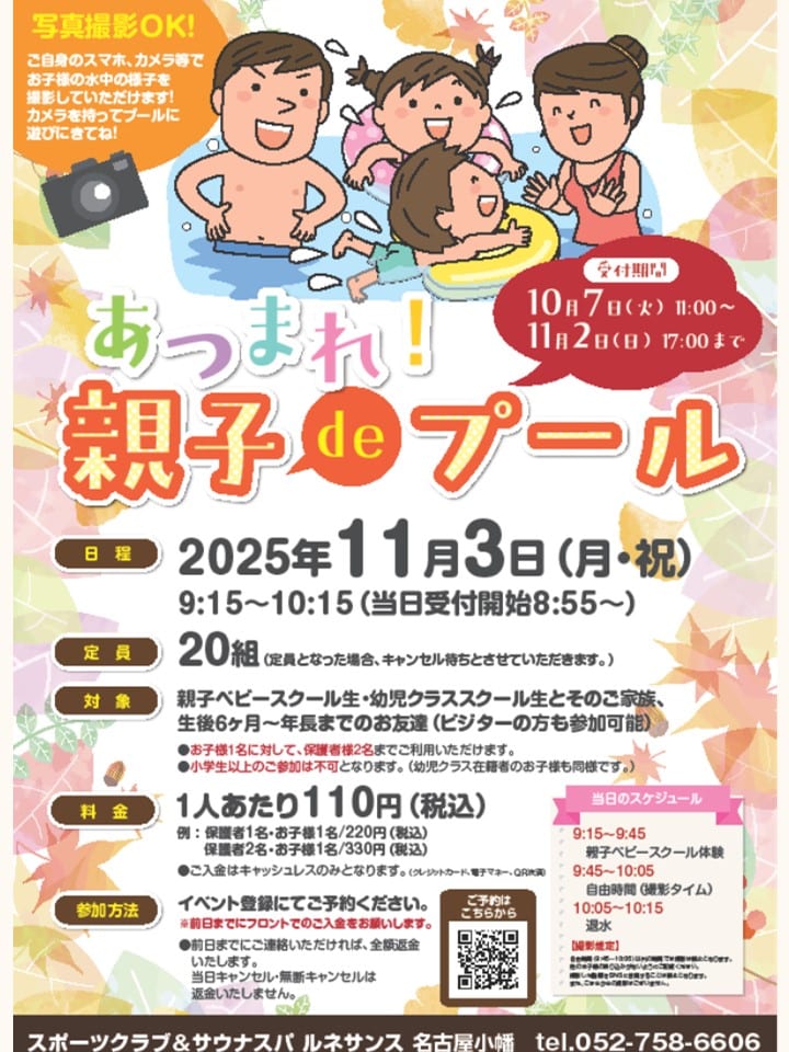 【親子ベビースイミング】11月3日(月)祝!あつまれ!親子deプール開催!