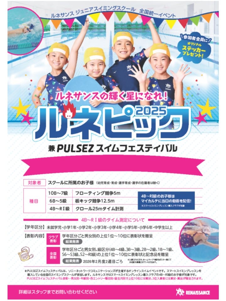 ルネサンスジュニアスイミングスクール会員の方を対象とした全国統一のイベントです。