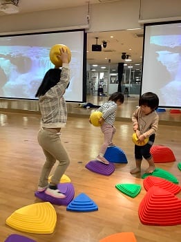 様々な大きさ・高さの石を配置し、石から石へ移動することでバランス能力・空間を把握する力を養います。