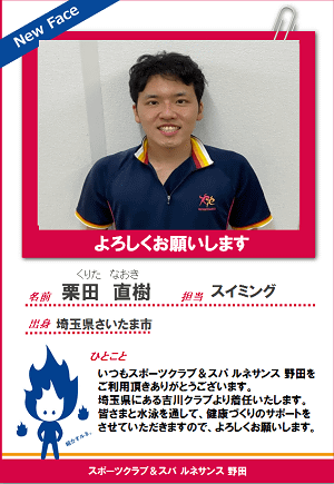 今回はスイミングスタッフ着任のお知らせをさせて頂きます。