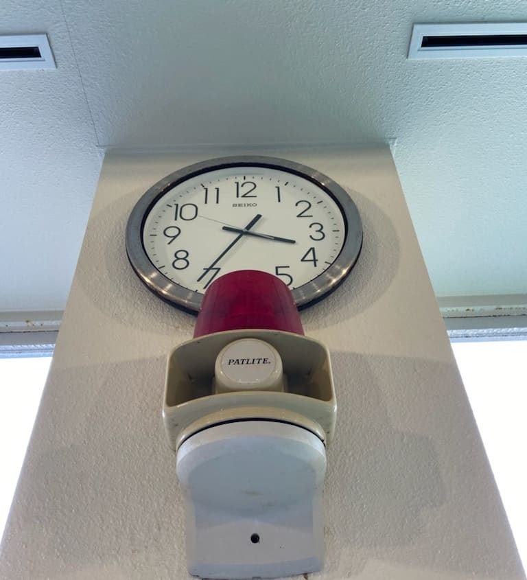 プールサイドにある警報器が鳴り、プールサイド全体に通知する機能となっております。