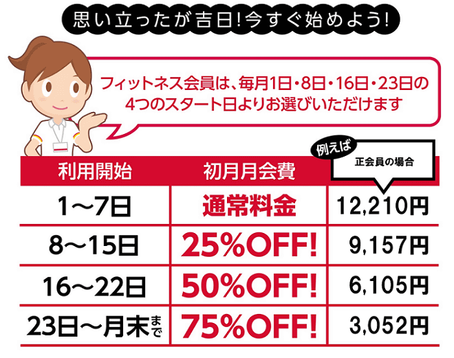 ★月途中のスタートでもお得にスタート!週割り制度あります!