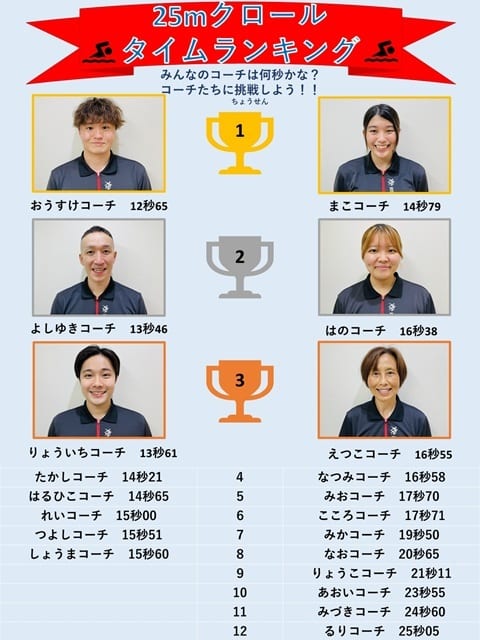 みなさんに負けじと、クロール25mのタイム測定を行いました!