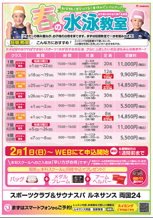 スイミングスクール体験・春の短期教室のご案内です!