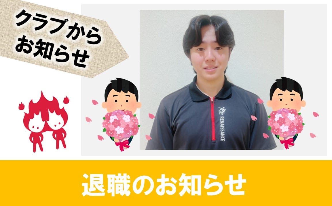 いつもよんでいただきありがとうございます。 皆様にご報告が... なんと今月末で...笹山トレーナーが... ルネサンスを卒業します(;_;)!!!  ・・・・