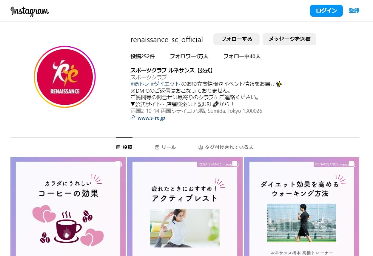 ルネサンスの公式アカウントがあるのはご存じでしょうか?