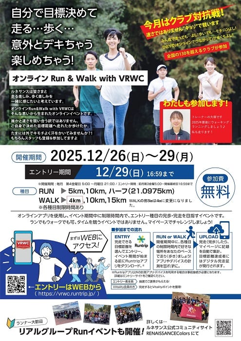あと!12月の「オンラインRun&Walk」が12月26日~29日に開催します!