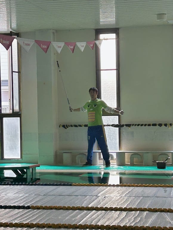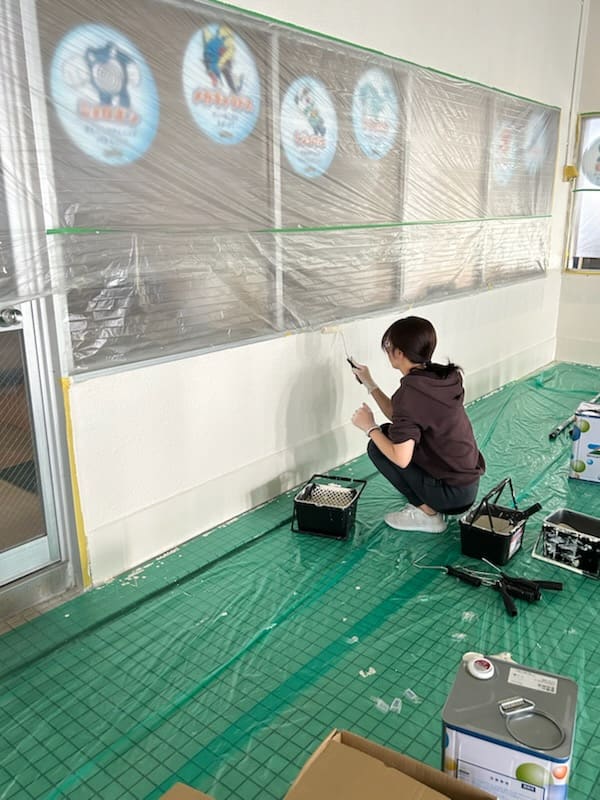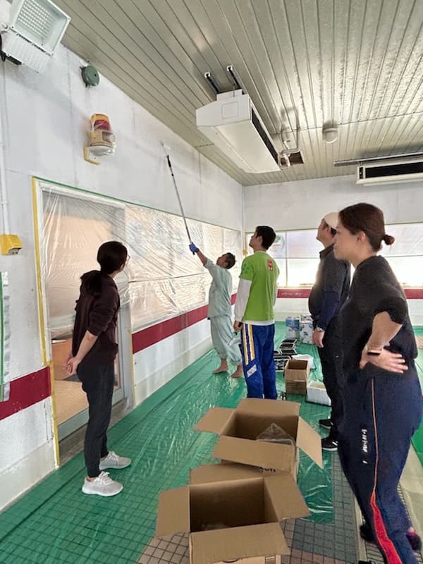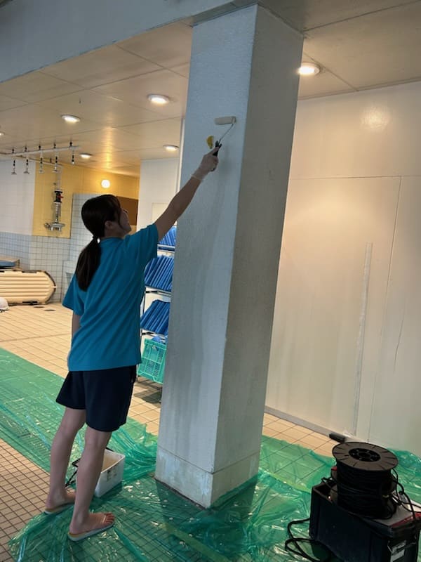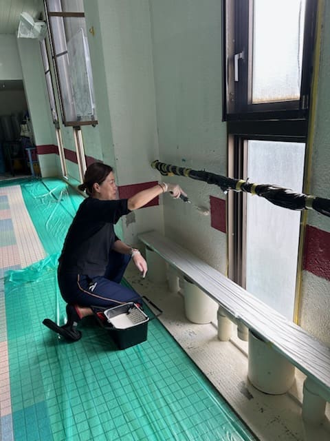 休館日に、プールの壁のペンキ塗りをスタッフで行いました!