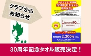 日頃よりスポーツクラブルネサンス三軒茶屋24をご利用いただき誠にありがとうございます。 スタッフの三堀です。 今回は30周年記念オリジナルタオル販売についてお知らせです! 販売開始:11月11日・・・・