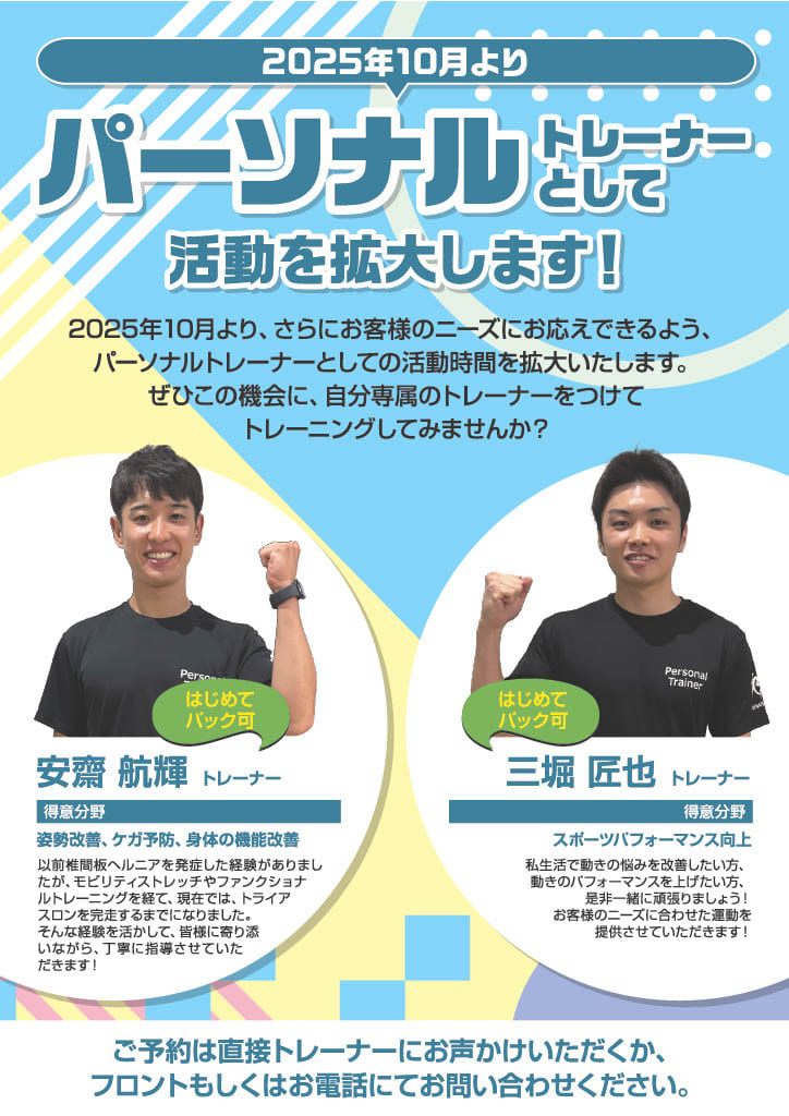 パーソナルトレーナーの安齋です。