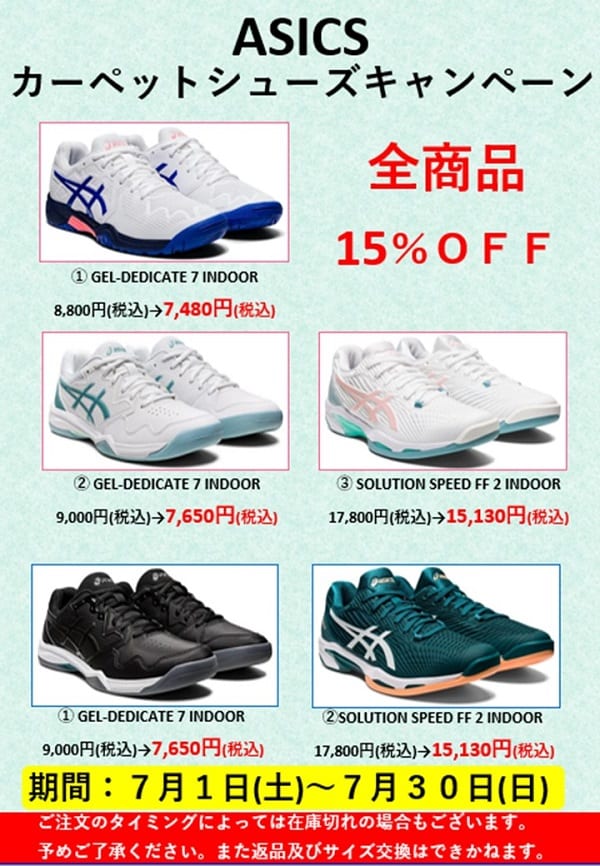 そこで!現在ルネサンスではテニスシューズキャンペーンを7月30日(日)までおこなっておりますので、シューズの新調を検討されている方はぜひこの機会にお買い求めください!