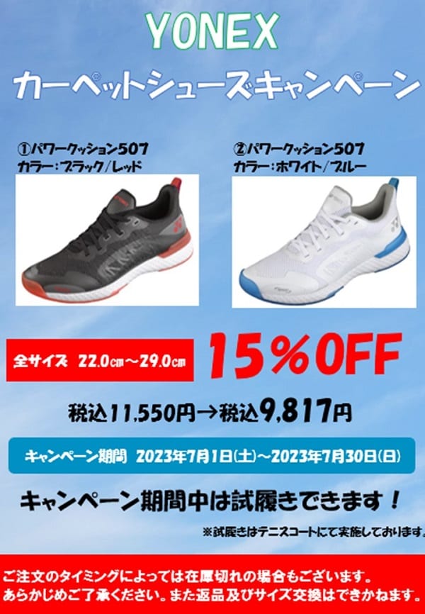 さて、今回は『テニスシューズキャンペーン』のお知らせです!