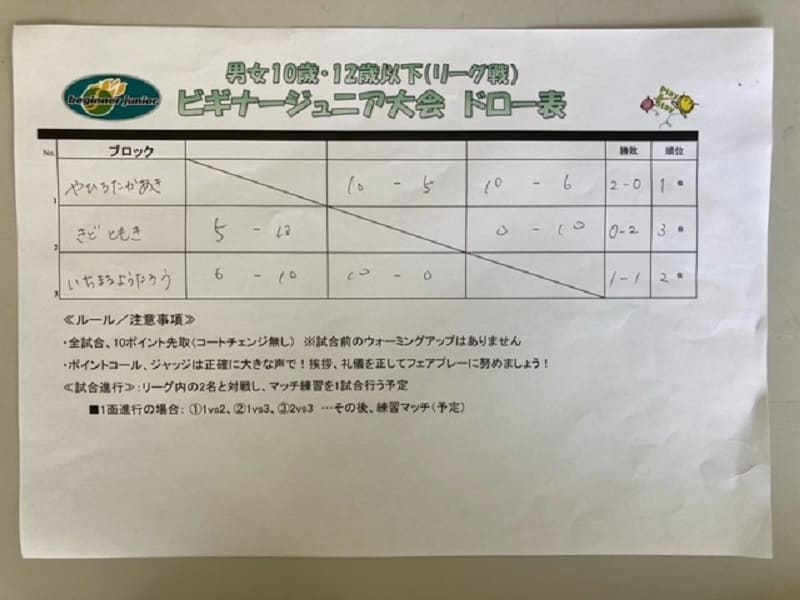 そして、今回は10歳以下男子・12歳以下男子に分かれてリーグ戦を行いました。