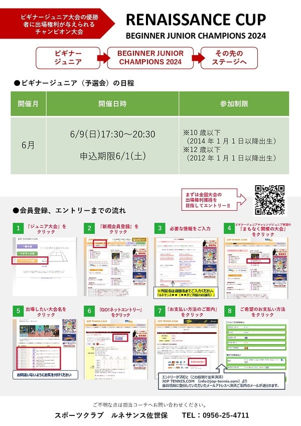 【テニス】4月29日(月・祝)ビギナージュニア大会