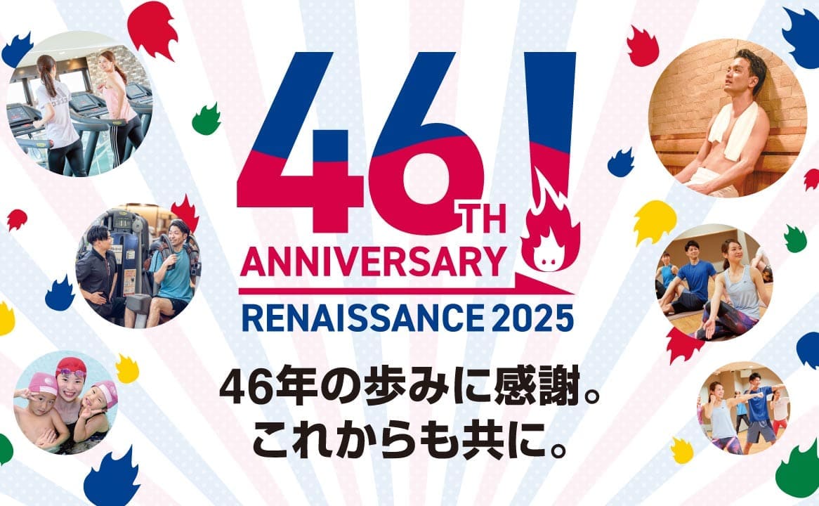 おかげさまで、スポーツクラブ ルネサンスは、46周年を迎えました。