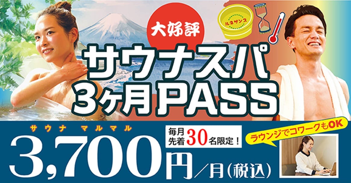 【毎月先着30名限定!】サウナ・お風呂だけお得に楽しめる『サウナスパ3ヶ月PASS』好評募集中!