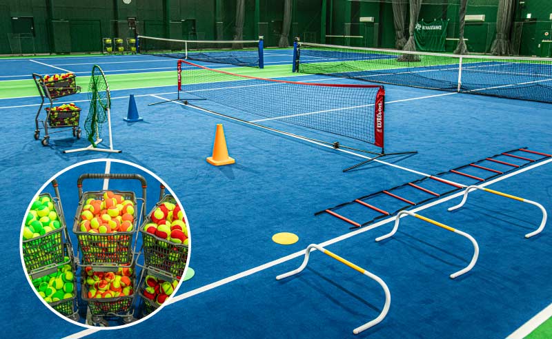 ルネサンスではテニスの習熟度ごとにクラス分けをし、さらにコートの大きさと道具をレベルに応じて変えています。