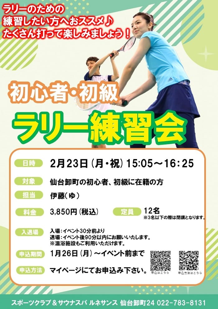 2月23日(月・祝)初心者・初級ラリー練習会