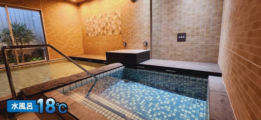 先に汗をサラッと流します。水風呂は低めに設定されています。勢いをつけず、2分ぐらいゆーっくり浸かりましょう。サウナの醍醐味は、ここ水風呂。血管がギューッと収縮し、交感神経を刺激します。
