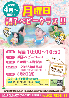 親子ベビークラス好評につき、4月度(3/30(月)スタート)よりクラスを増設いたします!