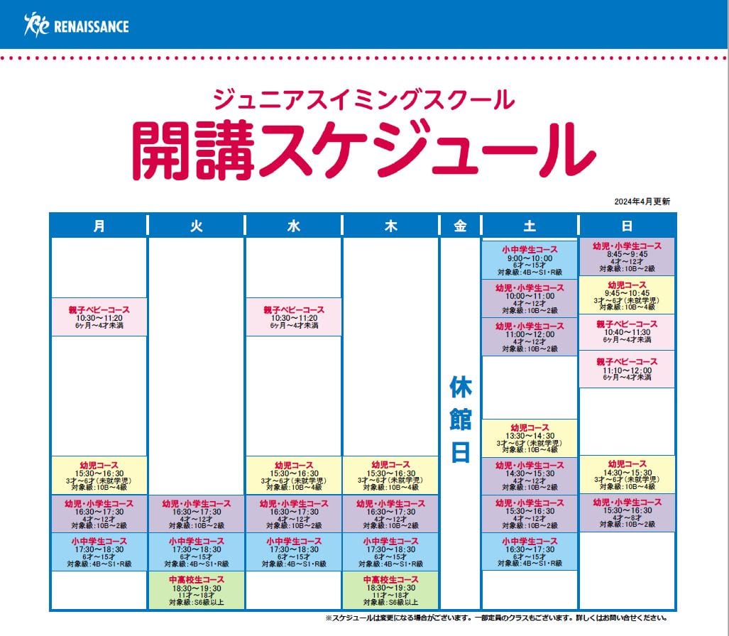 通うなら安全・安心なルネサンスのスイミングスクール!