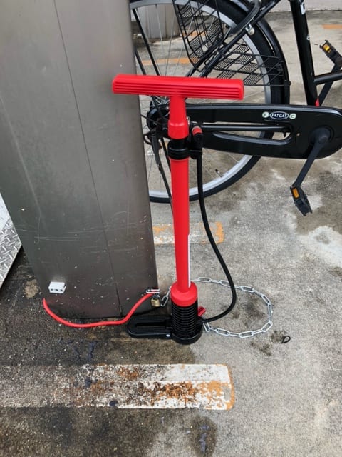 【もっと便利に!】駐輪場に空気入れを設置しました!