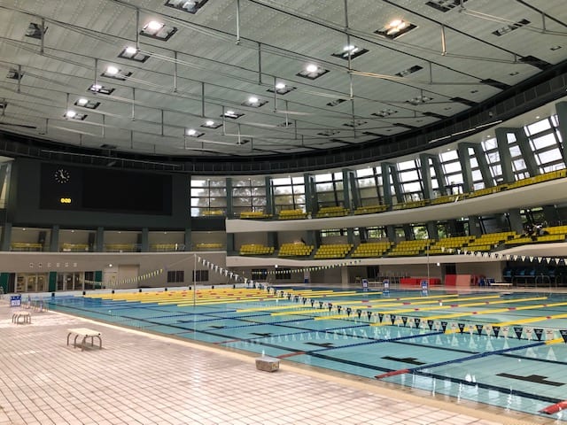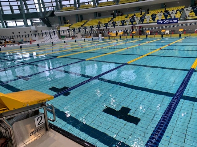 50mプールを横に区切って25mプールにしております。