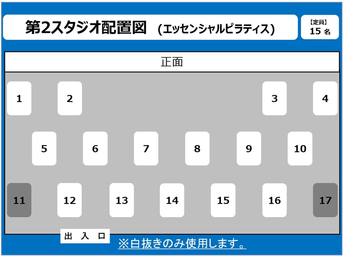 ※両スタジオとも定員15名(下記図の白抜きの番号のみ使用します。)