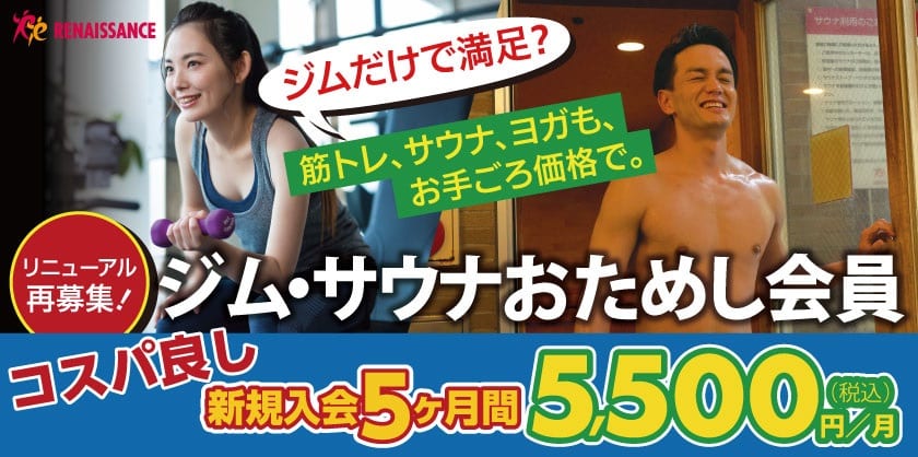 【ジム・サウナをご利用の方】『ジム・サウナおためし会員』募集中!今だからこそ、はじめよう。