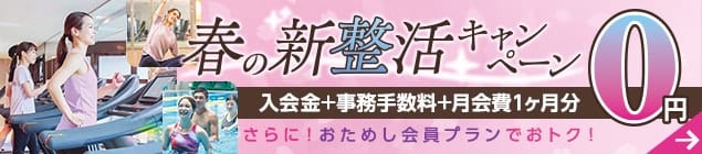 ※対象はフィットネス会員・スクール会員に新規でご入会いただく方となります。(重複入会・復会の方及びコーポレート会員は対象外となります。)