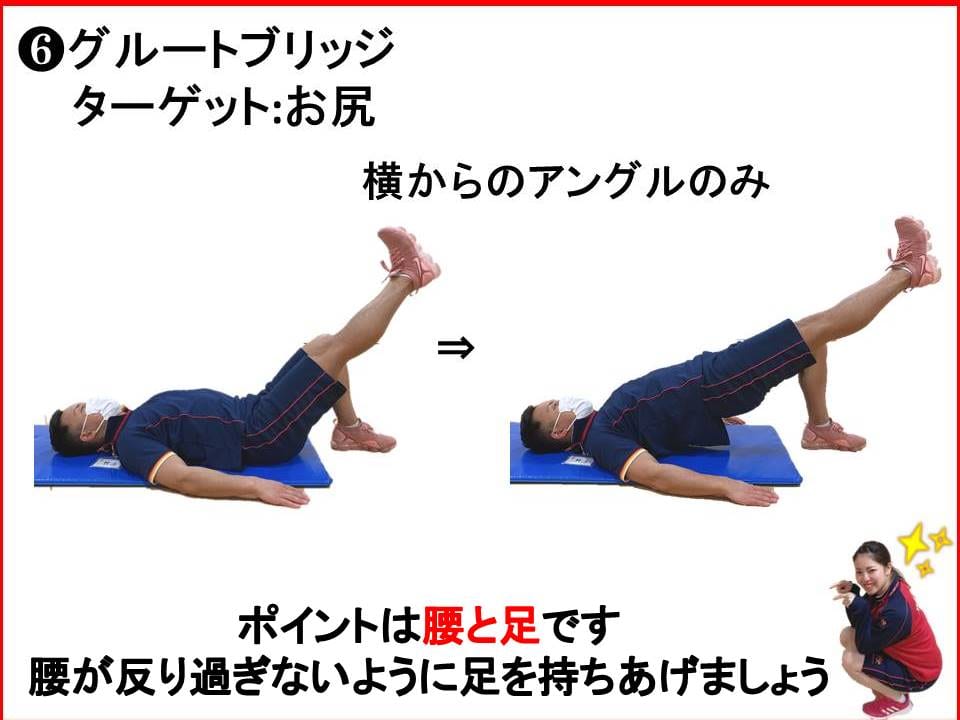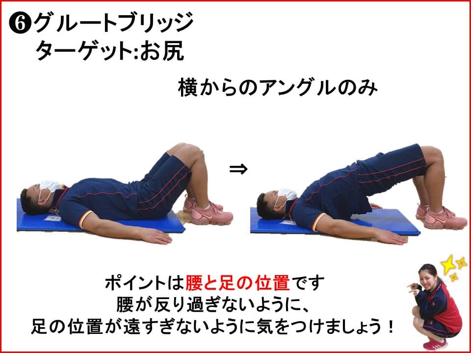 グルートブリッジ同様に膝から肩までが一直線に!!
