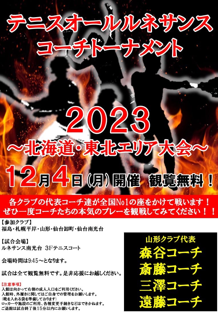 『ルネサンスオールコーチトーナメント』東北大会参加のお知らせです!