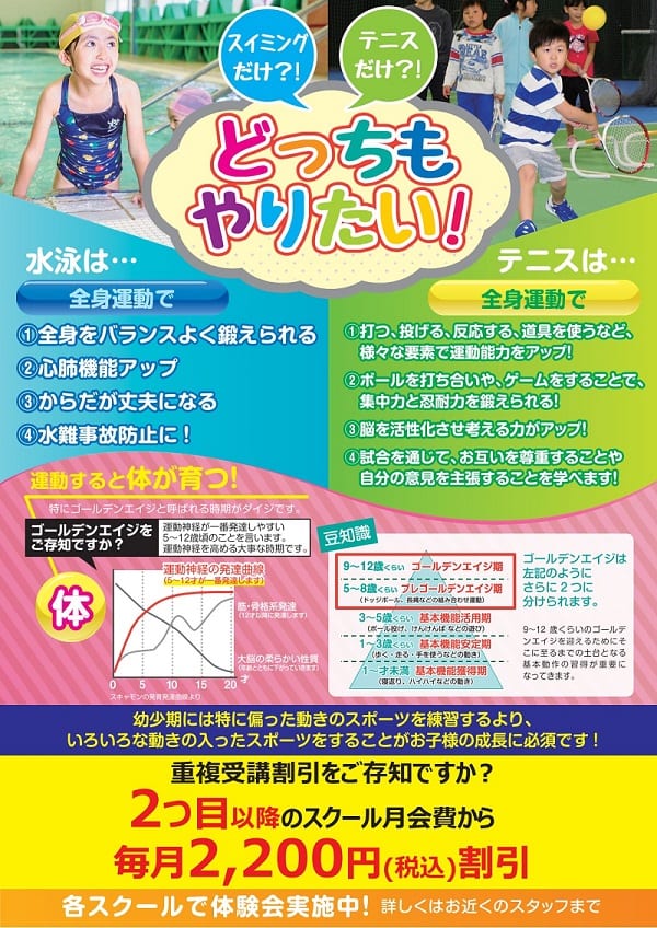スイミングとテニスを同時にスタートすると、